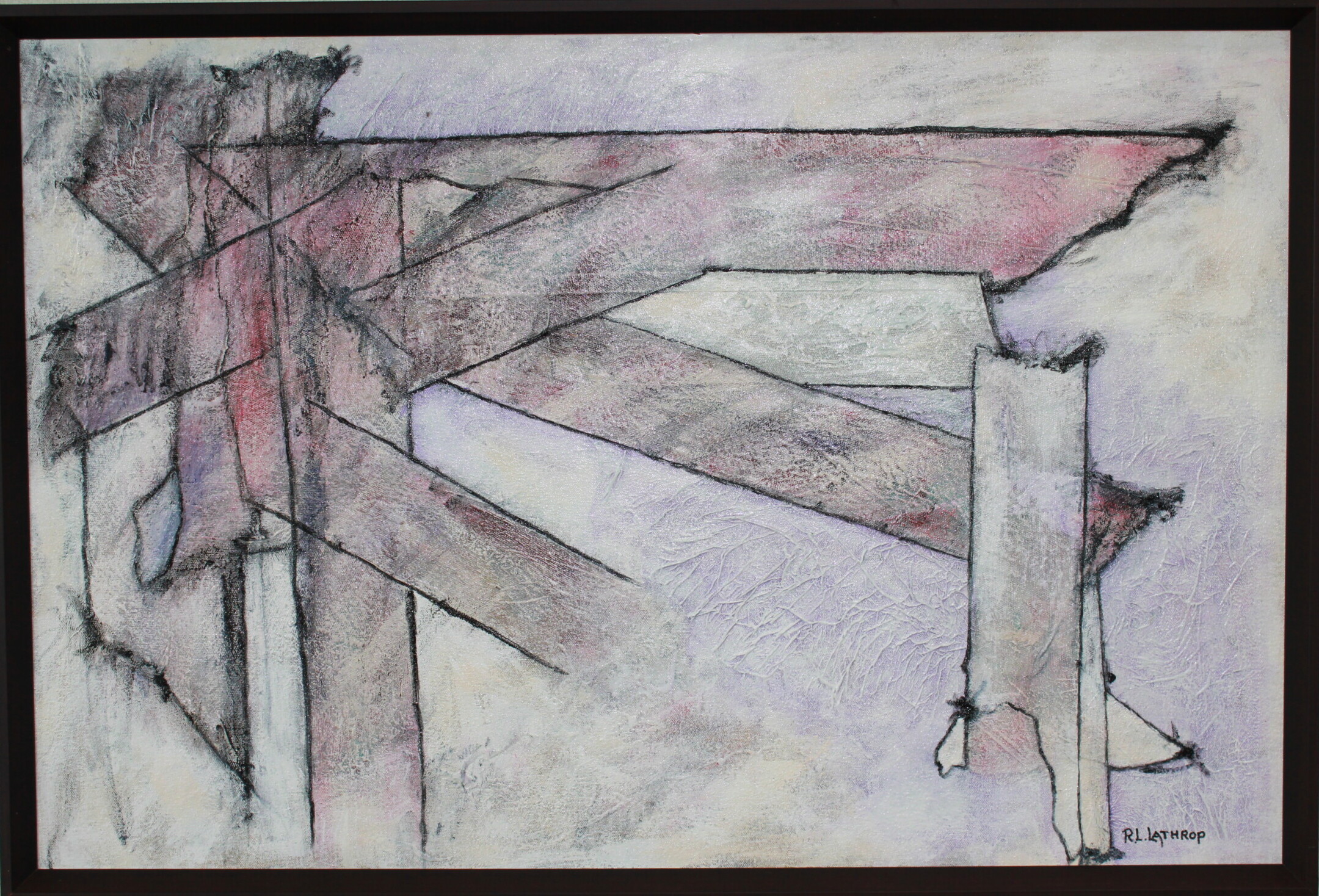 Immerse yourself in the serene elegance of ‘Peaceful Easy Feeling,’ an acrylic abstract painting by R.L. Lathrop. This stunning piece, with its intricate columns and purple-dusted details, is part of the distinguished collection at Hedgewood Gallery in Connersville, Indiana. Serving art enthusiasts throughout Indiana, Hedgewood Gallery is your premier destination for breathtaking artwork and gallery experiences